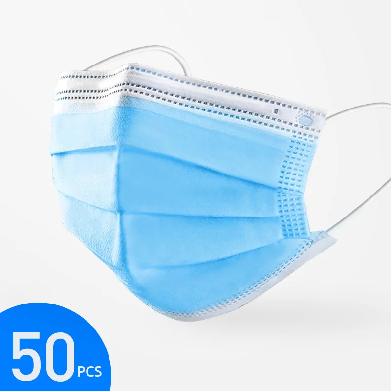 50PCS Dust Protection Mask Filter Anti Virus Earloops Mask 3 Layers Protective Mask Face Mouth Safe